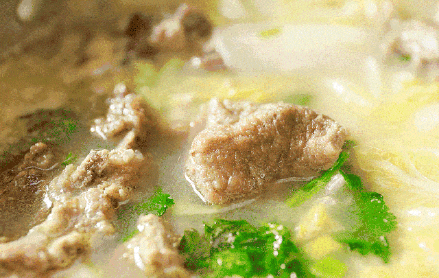 焦焦脆脆的皮,包裹着嫩嫩的肉,什么也不用蘸,一口全吃进去,热腾腾的肉肉带着焦香,里边的肉肉鲜嫩多汁!再来一碗羊杂汤,羊肺、羊肝、羊肚、羊血,舀一勺全是干货~一碗下肚,人也不抖了,身子也暖和了!