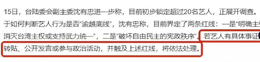 而这个举动让台当局如临大敌,台陆委会还当场扬言“谴责”这些艺人,所以在台湾地区领导人上任一周年的前夕,直接来了一招杀鸡敬猴。