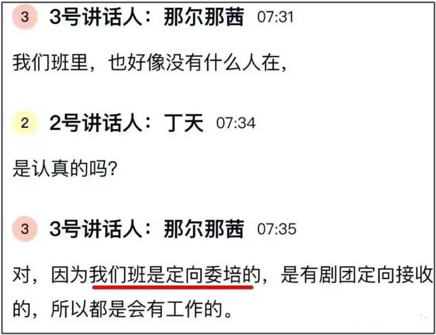 关于定向委培,通报提到2012年6月,有关领导小组收到上海戏剧学院寄来的那尔那茜毕业证、学位证之后,那尔那茜向领导小组办公室提出赴挪威攻读硕士学位报到需要取回毕业证、学位证原件的申请。