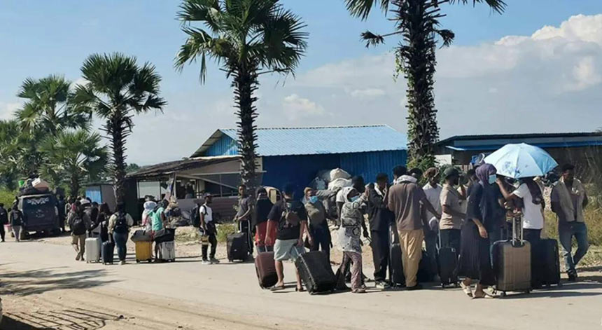 米兹玛记者说:"可以看到建筑工地已经停工,里面空无一人。但尚未看到军方部队突袭的迹象。观察到泰国当局在湄索检查被认为是外国人的人。早上在湄索Nong Bua环岛附近,看到泰国军方检查了一辆车并带走了人。"