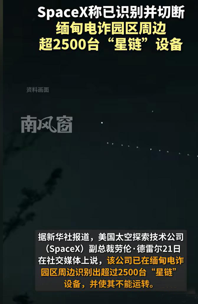 10 月 22 号这天,国际上炸出个大新闻 ——Space X 突然出手,把缅甸电诈园区周边的 2500 多台星链设备全给掐断了。
