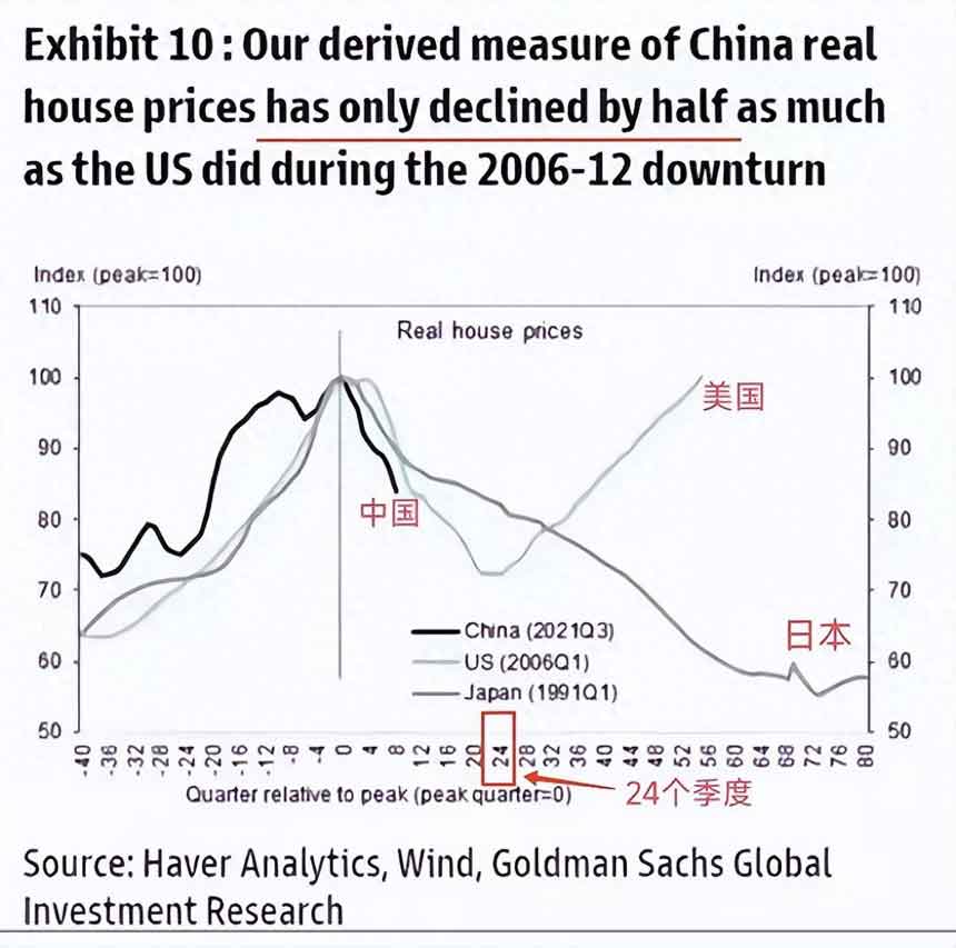 2024年4月流传的高盛三国房价对比图,把复杂问题变简单了。三国房价见顶后前两年跌势几乎重合,但第三四年开始分叉:美国用3年反弹,日本跌了17年才稳住。如今中国正站在见顶后的第四年,名义房价看着稳,实际成交价却常打八折,跌幅只到美国当年一半、日本零头。大家最关心:接下来是硬着陆还是快速回血?