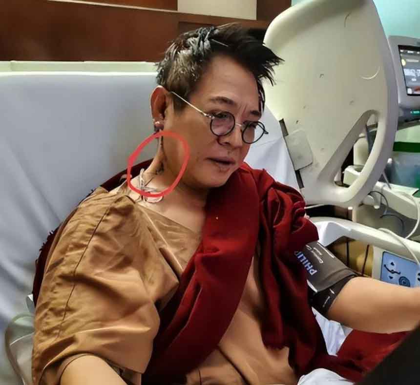 今年八月份还公开了自己送医的视频,眉头紧锁头发也很凌乱,旁边输血的管子格外的显眼。