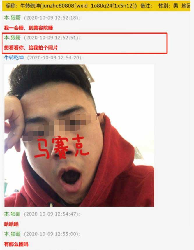 史林子和对方言语暧昧露骨,对方脱衣服,史林子还说要看照片,这还只是其中一个;