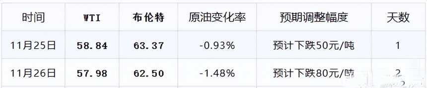 油价大跌近700元/吨后,12月油价继续下跌,12月8日进行下次调整