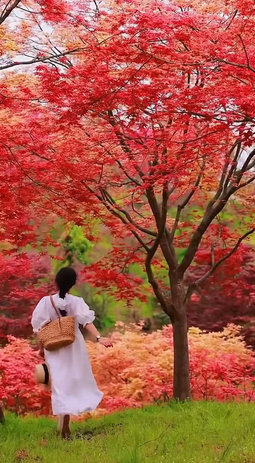 红枫林最佳观赏期就那么一阵,开园后赶紧冲!带上会拍照的搭子,或者自己架个三脚架,在这片红色海洋里,把重庆的秋天狠狠留在镜头里,承包一整个季节的浪漫与惊艳!