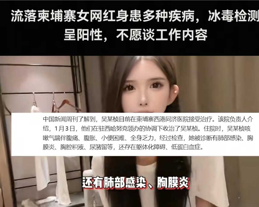 2026年1月3号,柬埔寨西哈努克市的同济医院收治了一位20岁的福建姑娘吴某,她在之前二十天还在KTV活动,朋友圈里发的都是新衣服和夜店照片,配上比耶手势,12月6日她发完最后一条动态后便失去联系,直到1月初被人发现时已经倒在街头,瘦得不成样子。