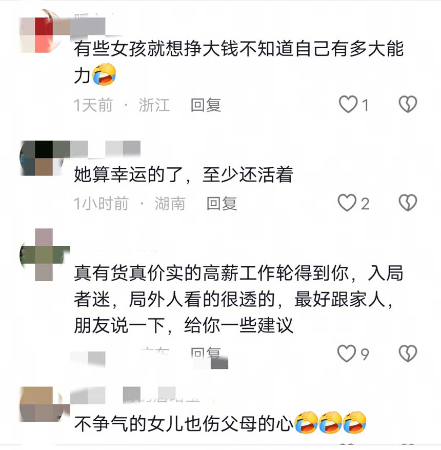 她不是一个人这样想,闽南地区很多年轻人看短视频后做起西港梦,觉得那里赚钱容易,夜生活热闹,身上戴满金子,衣服天天换新的,其实那地方早就变了样,但大家更愿意相信老乡说的话,不肯看清现实,这姑娘当初过去可能真以为自己能改变生活,结果却越陷越深。