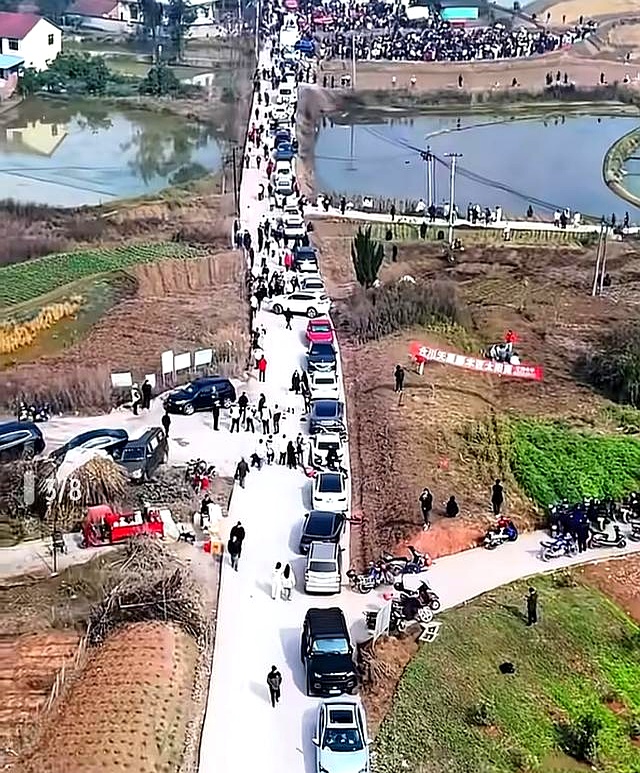 10号晚上,村口车子已经一溜排到坡上,远处灯在山路上拐来拐去。