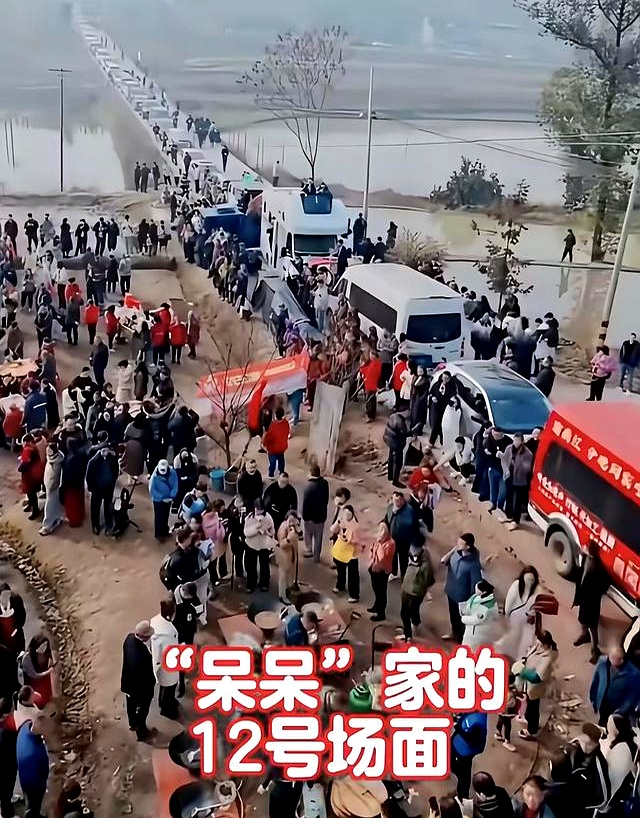11号中午人越聚越多,上千号,锅台火一直没灭,大铁锅翻着白花花的汤,杀猪匠手起刀落,灶门边都是柴灰。