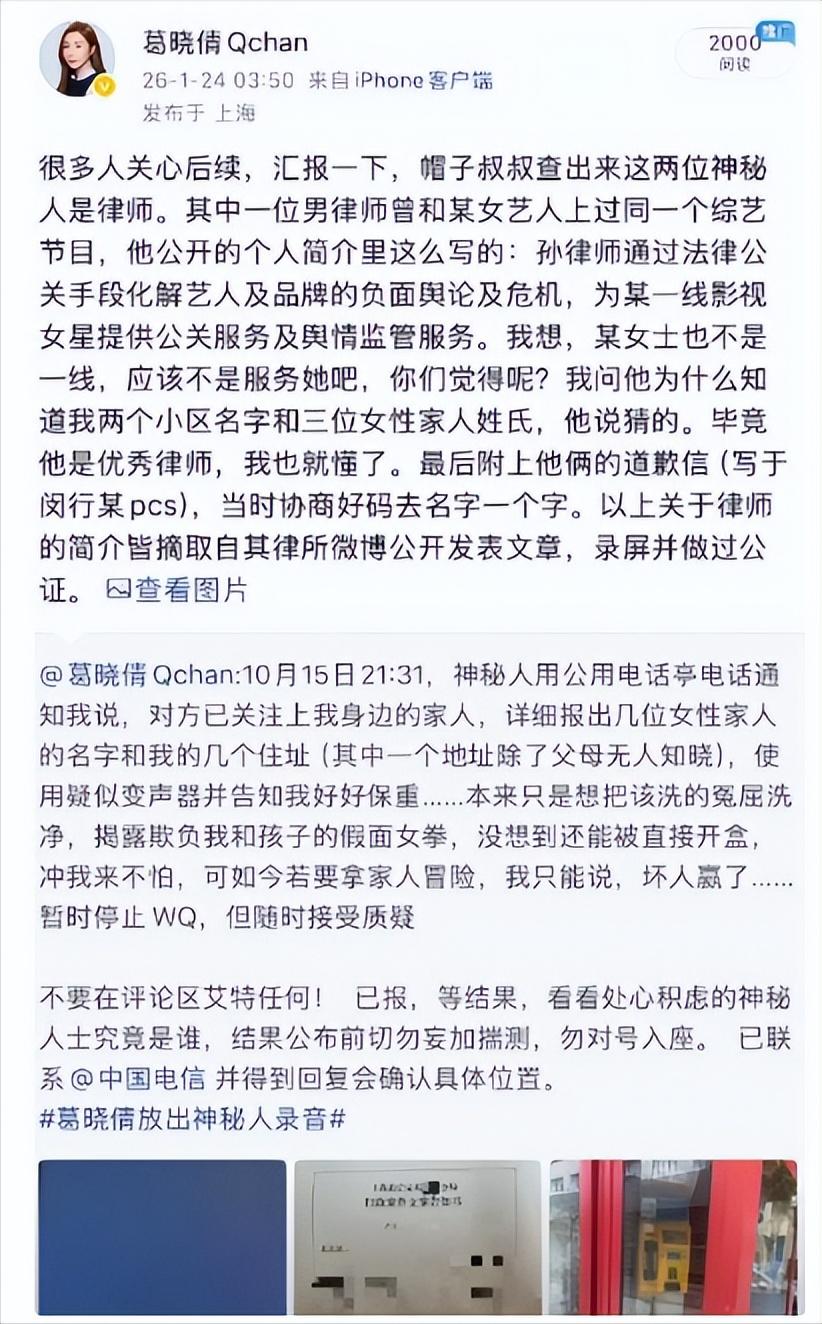 后续张女士声明袁先生已分手的说法,后来葛女士还爆料自己受到电话威胁,甚至带上了自己家人。