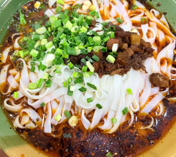 专门说说綦江米粉。做法看着简单,其实讲究。米浆得现磨现蒸,切得细细的,关键是那勺肉臊子。不是大块的肉丁,而是炒得干香的肉糜,裹在每一根米粉上。呼噜一口下去,米香混着肉香,再配上几颗油酥豌豆,口感层次分明,吃完额头微微冒汗,舒坦。
