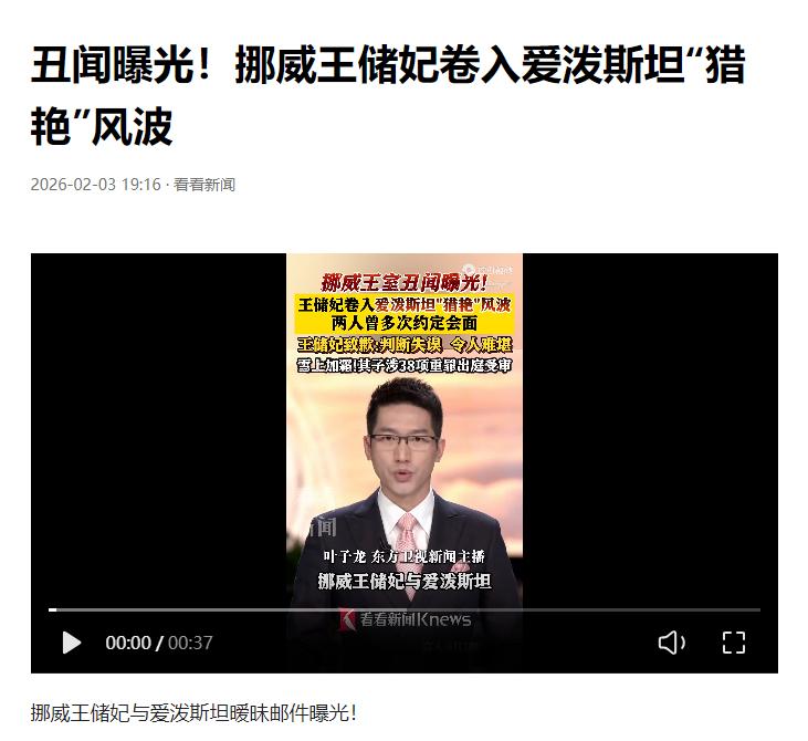 2026年2月,挪威王储哈康遭遇灭顶之击,爱泼斯坦解密文件显示,王储妃在臭名昭著的豪宅住了4天,继子更身背38项重罪指控。