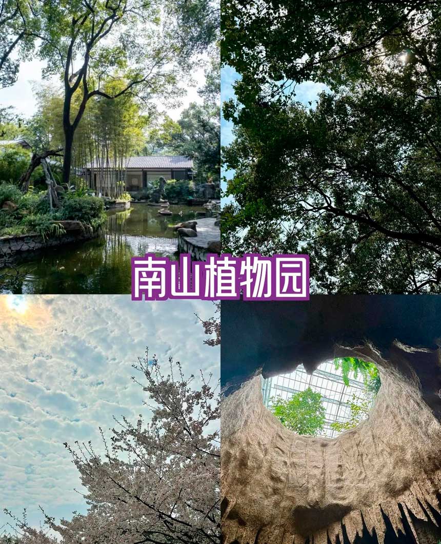 南山植物园真是个春天的梦,樱花大道仿佛在为我铺路。温室里的热带雨林让我想起了《失落的世界》,不过排队买票时也真是“人山人海”啊! 这美景值得等!