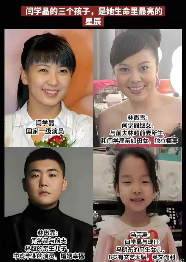 闫学晶第一任丈夫的女儿叫林傲雪,她和闫学晶儿子属于同父异母。林傲雪也是毕业于中戏,本来她的百科介绍,填写的毕业院校就是中戏。