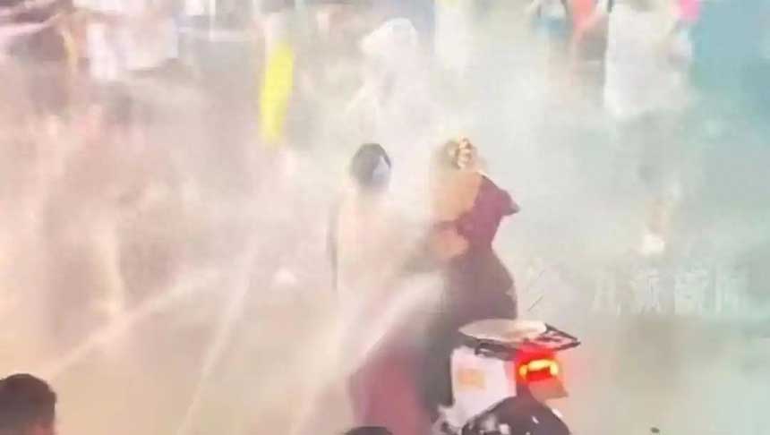 根据现场视频显示,一群人围堵在她们周围,手里的高压水枪不是向天泼洒,而是精准地对着两名女子的身体持续喷射。