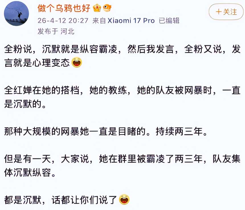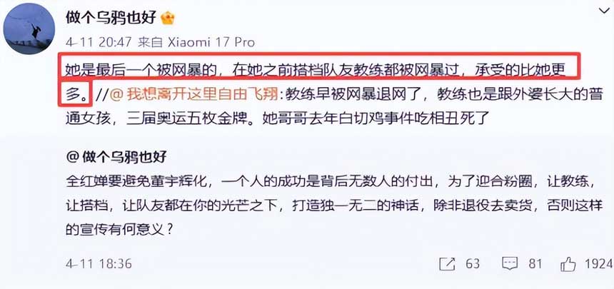 前脚刚在谴责网暴,后脚自己就变成了网暴的人,口口声声说守护运动员,结果反手伤害另一个运动员。