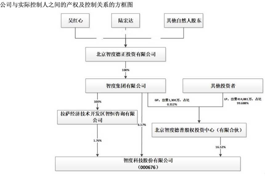 智度德正的全资子公司智度集团有限公司(下称“智度集团”),及智度集团的全资子公司拉萨经济技术开发区智恒咨询有限公司(下称“智恒咨询”),分别持有智度股份(000676)6.57%、1.76%股份。