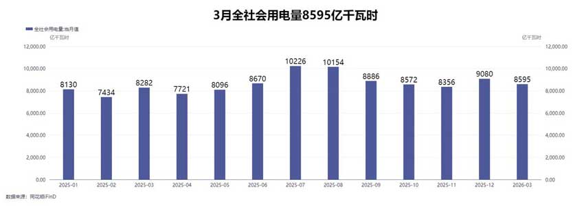 国家能源局数据显示,今年1~3月,全社会用电量累计25141亿千瓦时,同比增长5.2%。3月份,全社会用电量8595亿千瓦时,同比增长3.5%。