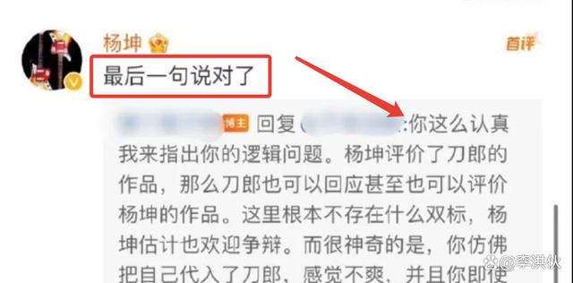 不过也有网友表示,杨坤这是“狗急跳墙”了,你当年骂刀郎的时候为啥不这样想?